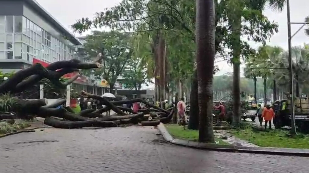Peristiwa pohon tumbang terjadi sekitar pukul 14.00 WIB, tepatnya di depan kantor Bank BCA KBP. Pohon yang berada di tepi jalan mendadak roboh saat hujan lebat dan hembusan angin kencang melanda kawasan tersebut.