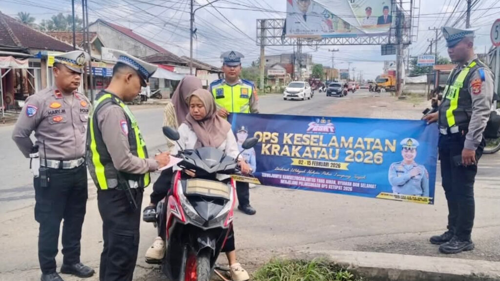 Lampung Tengah – Kosmiindonesia.com – Hari kedua pelaksanaan Operasi Keselamatan Krakatau 2026 menjadi momen penting bagi peningkatan kesadaran keselamatan berlalu lintas di wilayah Kabupaten Lampung Tengah. Satuan Lalu Lintas (Satlantas) Polres Lampung Tengah bekerja sama dengan Badan Perencanaan Pembangunan Daerah (Bappeda) Lampung Tengah dan Jasa Raharja menggelar kegiatan sosialisasi serta edukasi tertib berlalu lintas yang dijalankan dengan pendekatan humanis kepada seluruh masyarakat pengguna jalan.