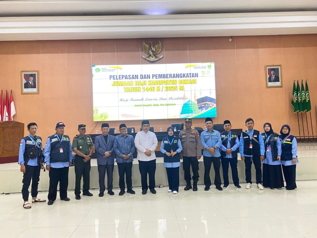 Bekasi – KOSMI INDONESIA – Pemerintah Kabupaten Bekasi secara resmi melepas keberangkatan jamaah haji kloter ke-33 dalam kegiatan Pelepasan dan Pemberangkatan Jamaah Haji Kabupaten Bekasi Tahun 1446 H / 2025 M, yang digelar di Gedung Wibawa Mukti, Komplek Pemkab Bekasi, Cikarang Pusat, Sabtu (17/05/25).