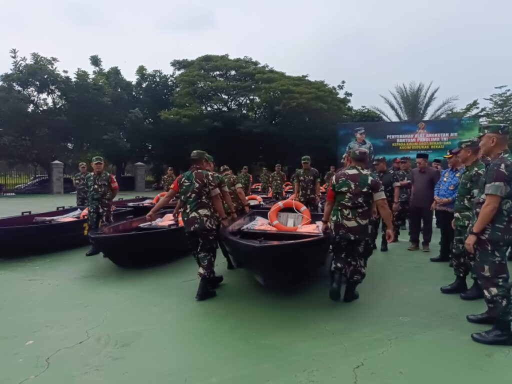 Kabupaten Bekasi– KOSMI INDONESIA- Dalam upaya meningkatkan kesiapsiagaan menghadapi bencana alam, khususnya banjir, Panglima TNI melalui Asisten Logistik Panglima TNI (Aslog Panglima TNI) menyerahkan bantuan berupa alat angkut air sebanyak 70 unit kepada dua Kodim di wilayah Bekasi. Kodim 0509/Kabupaten Bekasi menerima 20 unit perahu, sementara Kodim 0507/Kota Bekasi mendapatkan 50 unit perahu.