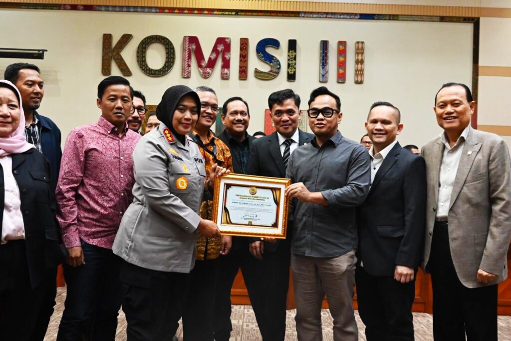 JAKARTA, Kosmiindonesia.com – Komisi III Dewan Perwakilan Rakyat (DPR) RI memberikan penghargaan kepada Kapolres Metro Bekasi Kombes Pol Sumarni, S.I.K., S.H. beserta jajarannya atas dedikasi dan kinerja luar biasa dalam mengawal penyelesaian permasalahan antara warga dan pengembang di Cluster Vasana Neo Vasana Harapan Indah, Kota Bekasi.