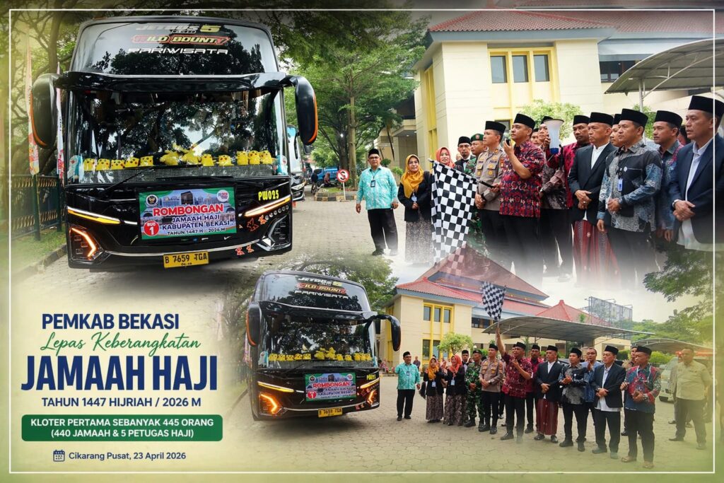 CIKARANG PUSAT — KOSMI INDONESIA — Pemerintah Kabupaten Bekasi secara resmi melepas keberangkatan jamaah haji Tahun 1447 Hijriah/2026 M di Gedung Wibawa Mukti, Komplek Pemkab Bekasi, Desa Sukamahi, Kecamatan Cikarang Pusat, Kamis (23/04/2026).