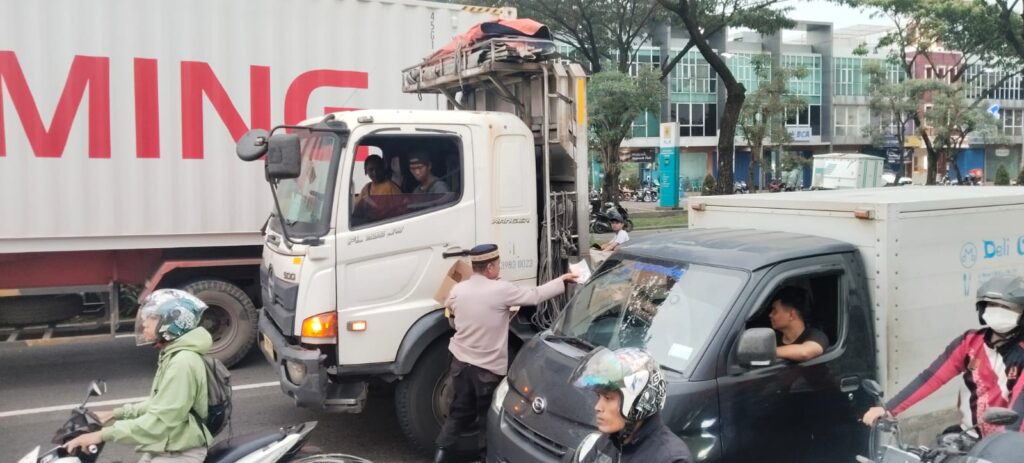 Bekasi – Kosmiindonesia.com – Menjelang waktu berbuka puasa, suasana di persimpangan lampu merah kawasan Delta Mas tampak berbeda pada Rabu (11/3/2026). Sejumlah personel Polsek Cikarang Pusat turun langsung ke jalan membagikan ratusan paket takjil kepada masyarakat yang berada di lokasi tersebut.