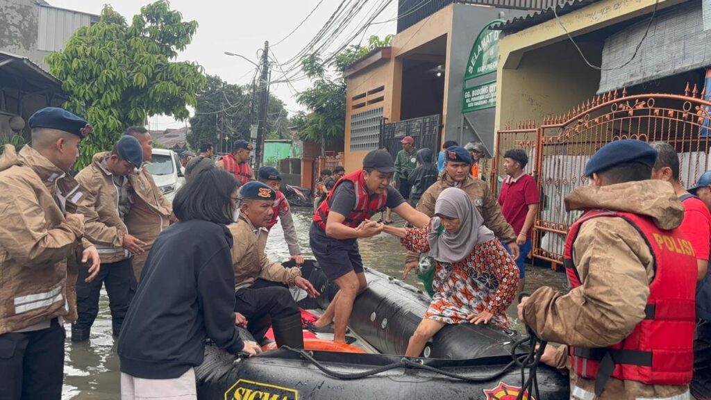 Tangerang – Kosmiindonesia.com – Jumat (23/01/2026) siang, Satuan Brimob Batalyon C Polda Metro Jaya melakukan evakuasi darurat terhadap warga yang terdampak banjir di dua lokasi berbeda, yaitu Perumahan Puri Kartika Pondok Kacang dan Perumahan Griya Kencana 1 Ciledug. Kegiatan evakuasi ini dilakukan secara cepat dan terkoordinasi untuk memastikan keselamatan seluruh warga terdampak.