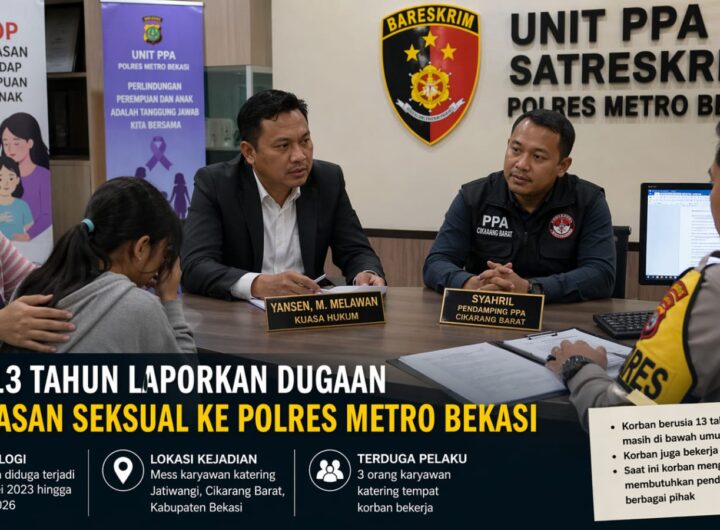 Korban Anak Diduga Kekerasan Seksual Laporkan Kasus ke Polres Metro Bekasi, Tiga Terduga Pelaku Karyawan Katering HUKUM PEMERINTAH PERISTIWA VIRAL Korban Anak Diduga Kekerasan Seksual Laporkan Kasus ke Polres Metro Bekasi, Tiga Terduga Pelaku Karyawan Katering Redaksi April 23, 2026 Gambar ilustrasi Read More