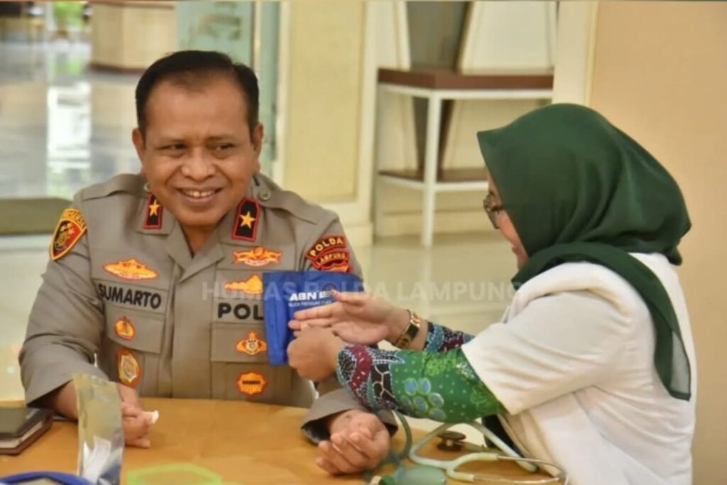 BANDAR LAMPUNG – Kosmiindonesia.com – Komitmen Kepolisian Daerah (Polda) Lampung dalam menjaga kesejahteraan anggota sekaligus berkontribusi nyata bagi masyarakat kembali dibuktikan melalui kegiatan sosial dan kesehatan yang bertaraf tinggi. Pada hari ini, Kamis, 9 April 2026, Wak Kepala Kepolisian Daerah (Wakapolda) Lampung, Brigjen Pol Drs. Sumarto, M.Si., secara langsung memimpin dan melaksanakan kegiatan Pengecekan Kesehatan serta Donor Darah.