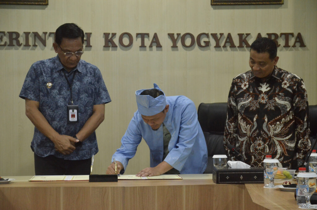 KOSMIINDONESIA.COM – Pemerintah Kota (Pemkot) Yogyakarta dan Pemkot Pekanbaru resmi menandatangani nota kesepakatan kerja sama di bidang penyelenggaraan urusan pemerintahan daerah. Penandatanganan dilakukan di Ruang Yudistira, Balai Kota Yogyakarta, Jumat (19/9), oleh Wakil Wali Kota Yogyakarta Wawan Harmawan bersama Wali Kota Pekanbaru Agung Nugroho.